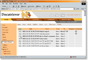 The Docutriever™ Message System is like most e-mail systems with some enhanced features. You can send, receive, forward and reply to messages. You can also attach files to messages. However, unlike regular email, there is no SPAM message in our system because we are not using a regular email server for internal communication. This makes it a closed message system and NO SPAM will ever get into it.